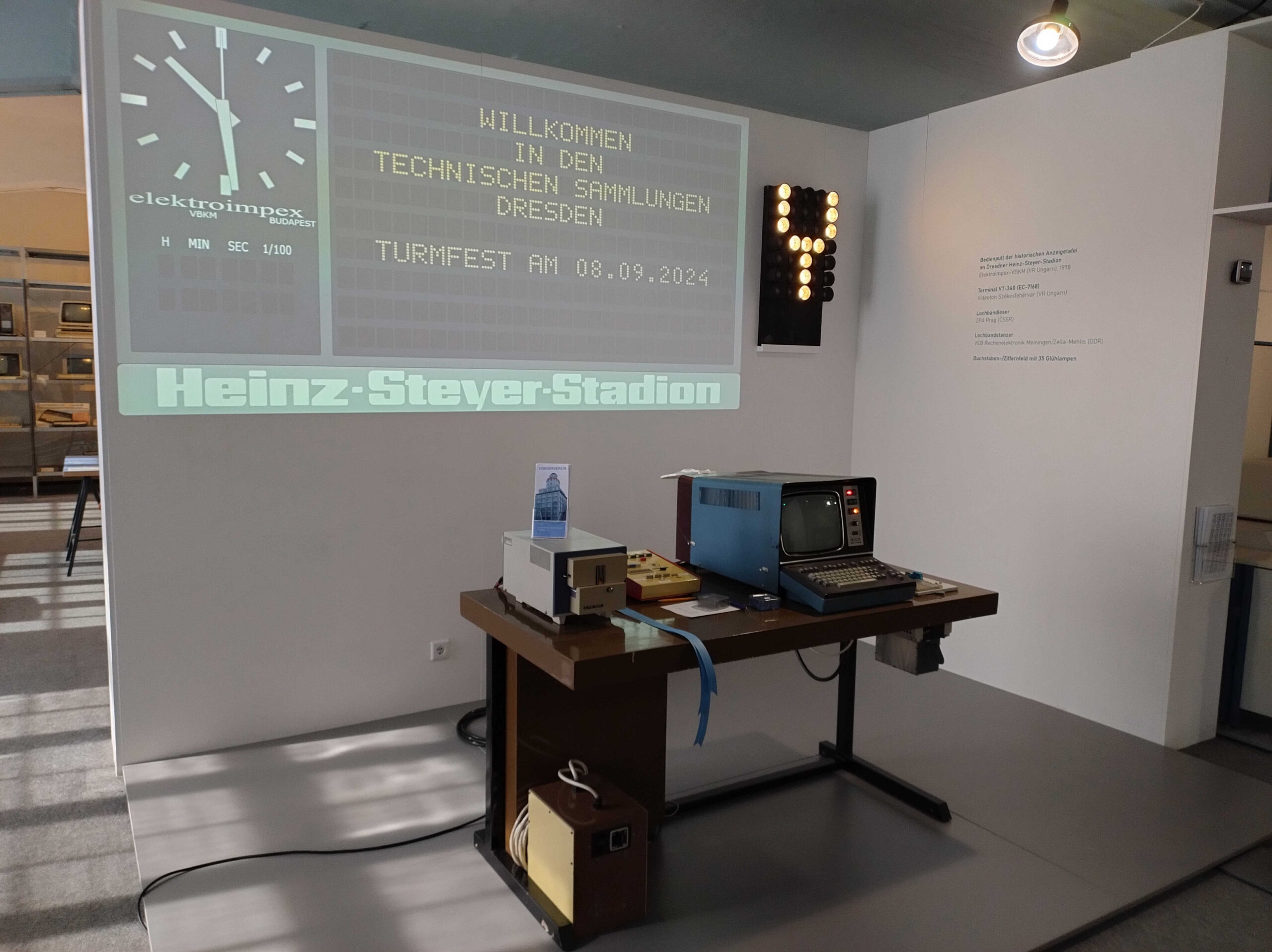 Vor dem Umbau des Stadions konnten die TSD einen Teil der Technik der Anzeigetafel übernehmen und mit diesem unter Mitwirkung von Mitgliedern unseres Vereins ein aktives Ausstellungsstück gestalten.